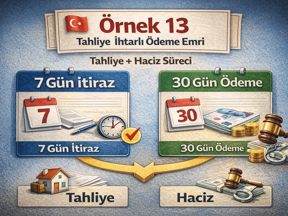 7 Mart 2026Published by tureliceylan.com on 7 Mart 2026Kategoriler Genel İcra ve İflas HukukuÖrnek No:13 Nedir?Örnek No:13 (Tahliye İhtarlı Ödeme Emri) Nedir? Kira bedelinin ödenmemesi halinde kiraya verenin en sık başvurduğu yöntemlerden biri, tahliye talepli kira alacağı takibi (ilamsız icra) yoludur. Bu takipte […]